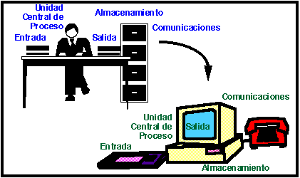 Veamos en el siguiente gráfico el paralelismo entre un archivo manual y un equipo informático.
