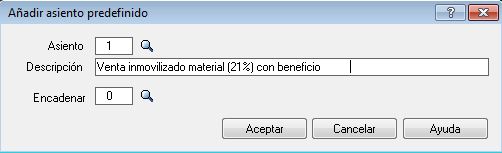 2. Asiento predefinido que nos permita agilizar la contabilización de la venta de un elemento del inmovilizado material en el que el resultado de la operación sea positivo (beneficio).