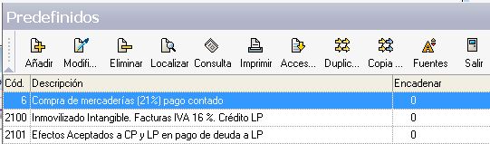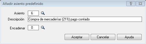 1. Asiento predefinido de compra de mercaderías (IVA 21%) con pago al contado.