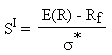 La razón de su denominación es inmediata: el numerador de la expresión denota el exceso o prima de rentabilidad que la cartera p analizada reporta con respecto a la rentabilidad que el inversor puede obtener mediante activos sin riesgo Rf; mientras que el denominador es la desviación típica de la variable aleatoria rentabilidad, indicador de la variabilidad de Rp. Este denominador es, por tanto, la raíz cuadrada de la varianza y, en consecuencia, la expresión contempla el riesgo total de la cartera.