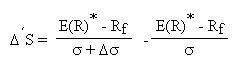 Esta relación inversamente proporcional es difícil de precisar desde un punto de vista numérico a partir de la expresión anteriormente indicada, ya que la variación de la performance depende no sólo del valor de este incremento Ds, sino que también depende del valor de partida de la desviación típica, es decir, depende de s. Sin embargo podemos observar que aumentos adicionales del nivel de riesgo penalizan en mayor proporción al índice de Sharpe cuanto menor es el nivel de riesgo soportado inicialmente por la cartera.