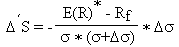 El objetivo se centra en hallar la expresión correspondiente al incremento del valor de la performance DS que ha venido provocado por la variación de la rentabilidad esperada DE(R):Por tanto: