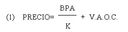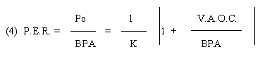 Donde V.A.O.C. es el Valor Actual de las Opciones de Crecimiento de la compañía, BPA es el Beneficio por Acción y K es una tasa de descuento utilizada para actualizar los valores.
