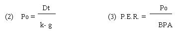 - A mayor tasa e crecimiento "g", se tiene un mayor Po, y por lo tanto un mayor PER (es decir, en principio, tienen mayores posibilidades de crecimiento).