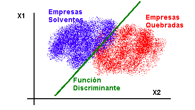 Altman (1968) utilizó esta capacidad del análisis discriminante para clasificar las empresas en dos grupos, empresas quebradas y no quebradas según este indicador fuera mayor o menor que cero, otros autores posteriormente han utilizado con éxito esta técnica en estudios de predicción de quiebra.