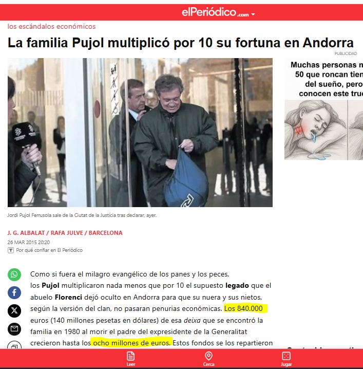 Jordi Pujol fue Presidente de la Generalidad de Cataluña entre 1980 y 2003. El 25 de julio de 2014, Jordi Pujol reconoció en un comunicado enviado a varios medios haber ocultado a la Hacienda Pública durante 34 años «un dinero ubicado en el extranjero», según sus afirmaciones procedente de su padre Florenci Pujol. En ese comunicado Pujol lamentaba no haber encontrado nunca el «momento adecuado» para la regularización de esas cantidades y pedía perdón a la opinión pública. Los fondos crecieron desde los 840.000 euros de 1980 hasta los ocho millones en 1992 según leemos en El Periódico. En el artículo pone que "la rentabilidad de estos productos era del 10% al 12%, aseguró el hijo mayor de la familia, que defendió ante la jueza que el incremento del patrimonio del clan en Andorra responde a la inversión en esos productos y a los intereses devengados". Si lo que pone en los periódicos es cierto: