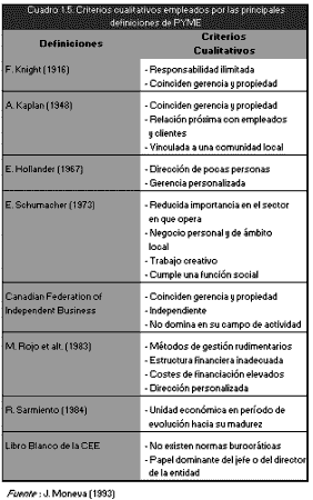 Una explicación a la existencia de tantas acepciones para la clasificación de las pequeñas y medianas unidades económicas la encontramos en J. Moneva (1993 p. 41), donde el autor nos señala tres dificultades que impiden un criterio ampliamente aceptado, a saber:
