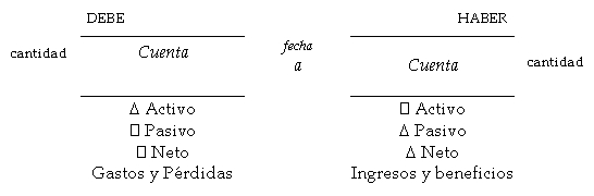 Las anotaciones de los hechos contables en el Libro Diario se denominan asientos, las cuales exigen la identificación de los elementos afectados y la coordinación entre las cuentas que intervienen en los mismos. La suma total del Debe ha de ser igual a la suma del Haber. Habitualmente los asientos presentan la forma siguiente: