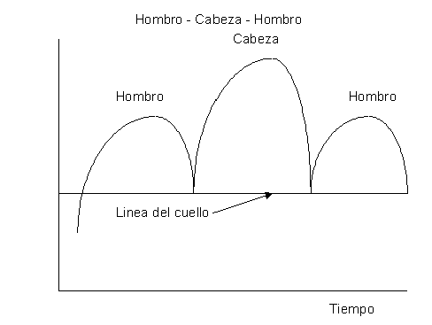 Su nombre provienen de la semejanza a la cabeza y hombros de un hombre. Se caracteriza por comenzar con un pico, seguido de un segundo pico más alto y seguido de un tercer pico más bajo que el segundo, pero, aproximadamente, igual en altura al primero. El volumen es muy importante en esta figura.