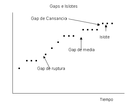 Suele producirse hacia la mitad del movimiento esperado, una vez producido el gap de ruptura. También puede ocurrir que se produzcan varios gaps de medida, lo cual revela que el mercado esta subiendo o bajando sin demasiado esfuerzo, con un volumen de contratación moderado.