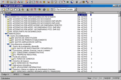 Estructura del P.G.C.Cuando pulsamos esta opción aparece el árbol de cuentas del Plan Contable que hemos elegido para nuestra empresa, con sus correspondientes títulos y cuentas.
