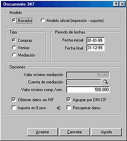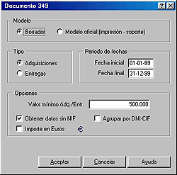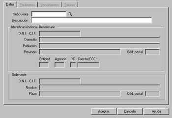 Con esta opción definimos una serie de valores por defecto para la obtención de listados y la entrada de datos del fichero de subcuentas en lo relativo a la descripción de los desgloses.