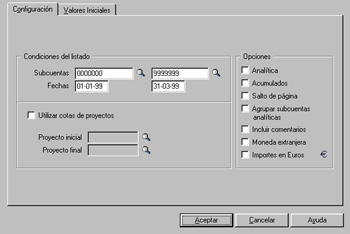 Una utilidad similar a la anterior del Diario, pero clasificados por subcuentas.
