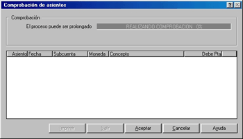 Su finalidad es la de controlar todos los asientos del diario, para comprobar cuadres, si existen en los ficheros las subcuentas definidas, etc. Se utiliza cuando se observan anomalías.