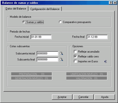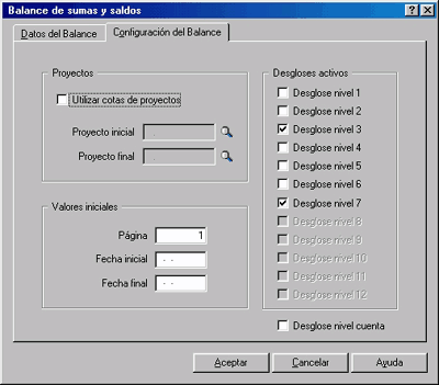Los niveles de desglose marcados aparecerán en el balance de sumas y saldos, aunque se permitirá modificarlos.