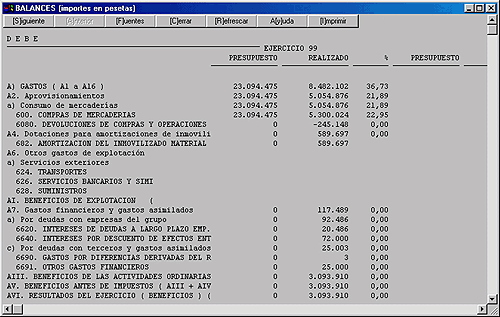 Existen otras opciones en este menú como: localizar epígrafe, código en el balance, visualizar saldos, cambio de desglose, imprimir, mayor, cambio de nivel de la cuenta