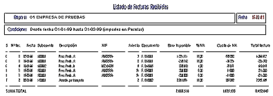 ...tanto para el caso de la Facturas Recibidas como Emitidas, obtendríamos un informe similar a este: