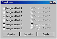 - la opción Niveles de desglose del menú Financiera/Configuración, que permite cambiar el desglose de todas las cuentas simultáneamente. Por defecto el programa marca el nivel 3 y el de subcuenta, que no son desmarcables.