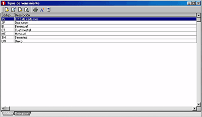 Para poder clasificar y distinguir los distintos tipos de vencimiento podemos codificarlos en esta opción y así será posible sacar listados de vencimientos por diferentes tipos a través de la gestión de vencimientos.