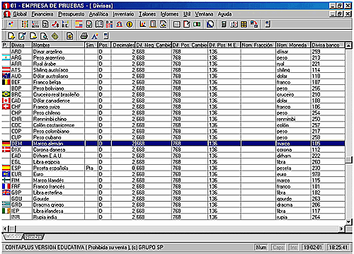 Se puede introducir las variaciones en los tipos de cambio asociados a cada divisa, introduciendo el tipo de cambio para cada fecha. Estos tipos pueden ser utilizados de forma automática en los ajustes que realiza el programa.