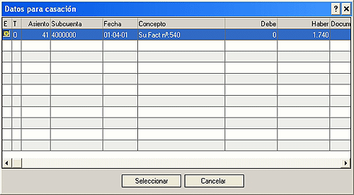 Desde gestión de asientos la casación se realiza posicionándonos sobre la partida que será el origen de la casación (ej. sobre la línea del proveedor del asiento pulsamos el botón casaciónpara marcarlo como origen.