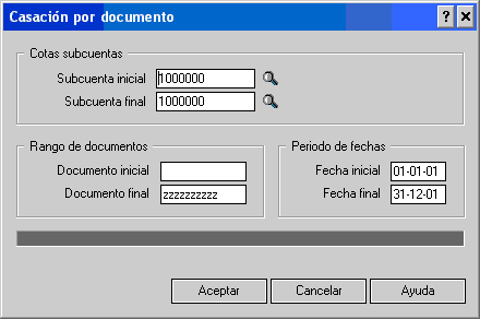 Mediante la utilización del campo documento en la gestión de asientos, tanto en el asiento origen como en los posteriores cobros o pagos marcaremos el mismo código de documento que luego casaremos mediante la opción de casación de documento. En ella se especifica, acotando al máximo, las subcuentas a casar, el rango de documento y el periodo de fechas para evitar casaciones masivas no deseadas.