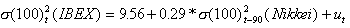 Donde:Sigma(100) es la volatilidad a 100 días ya del IBEX, ya del Nikkei, correspondiendo el subíndice al período de cálculo.